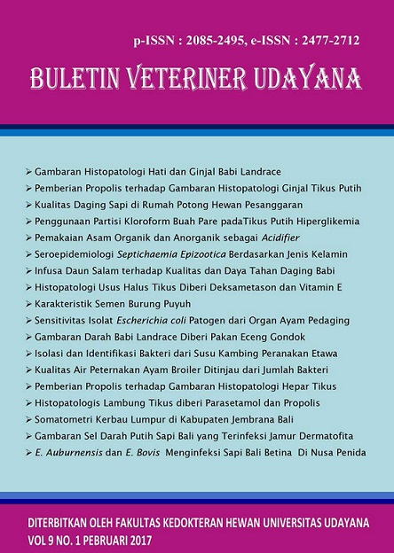Vol 9 No 2 (2017)This journal is in a collaboration between The Faculty of Veterinary Medicine and Indonesian Small Animal Veterinarian Practitioner Asociation and Indonesian Veterinary Medical Asociation in Region Bali