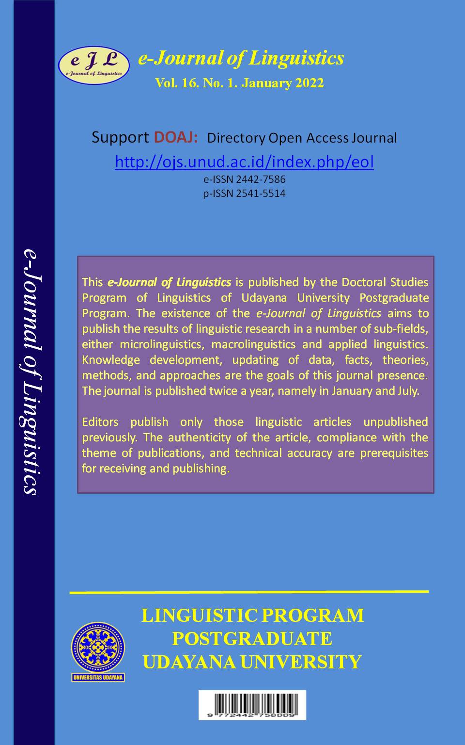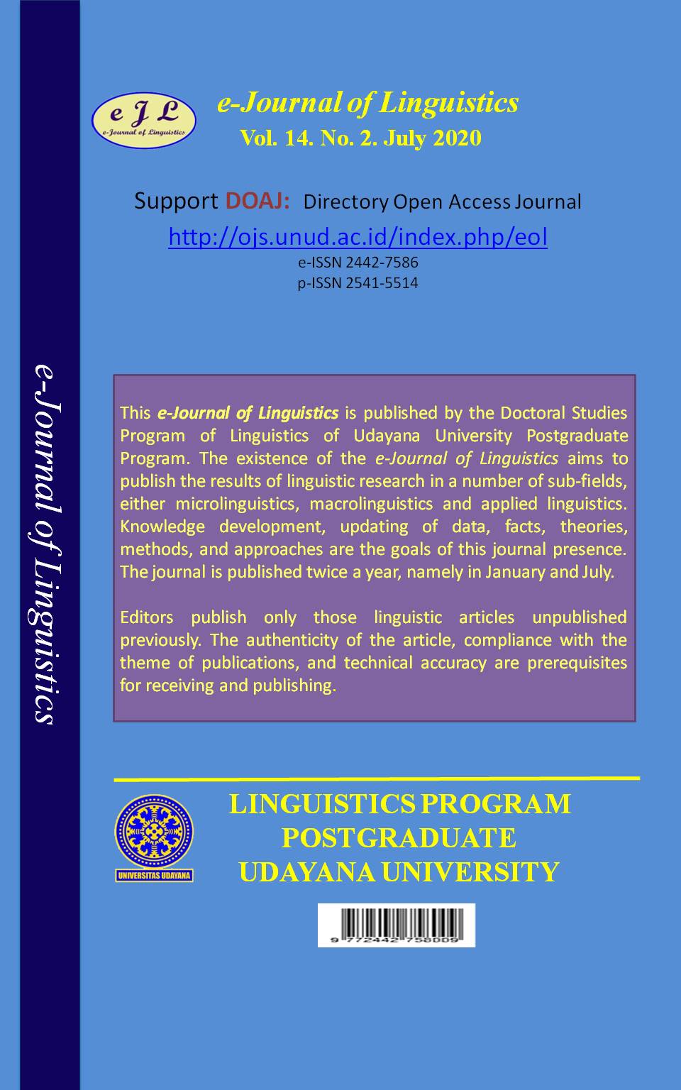 e-Journal of Linguistics. Published by: Doctor Linguistics Postgraduate Udayana University. Email: ps_linguistik@yahoo.com Jl. Pulau Nias No 13 Denpasar