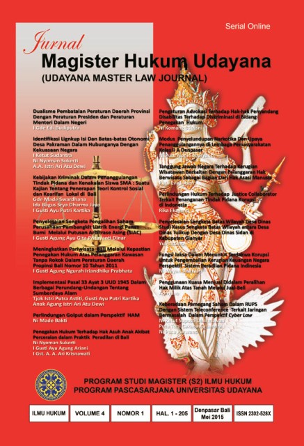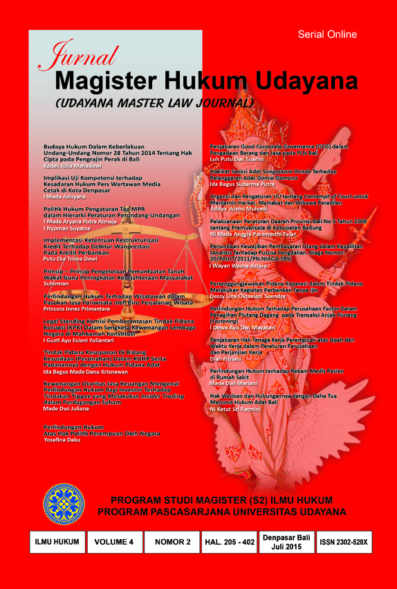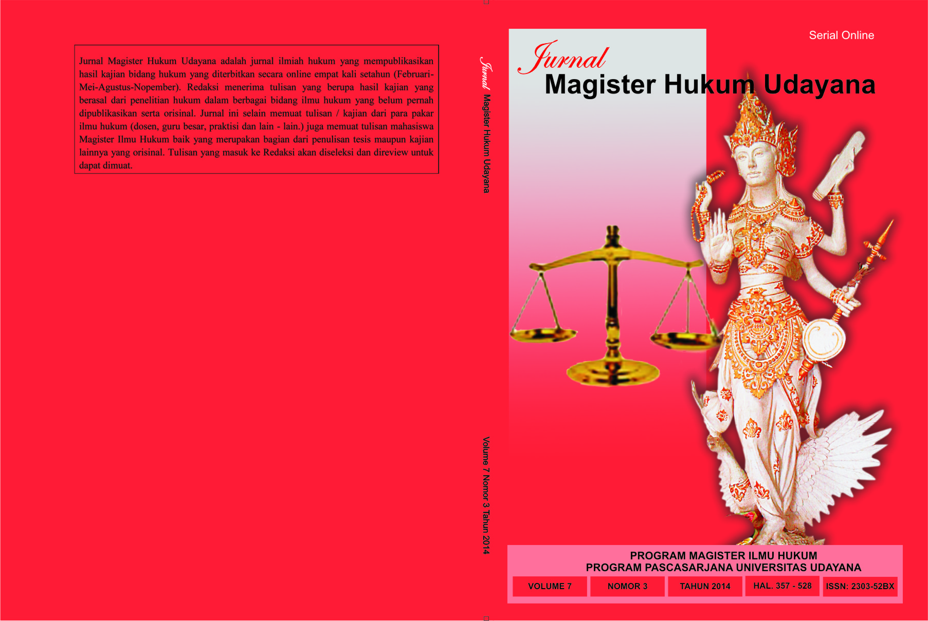Jurnal Magister Hukum Udayana (Udayana Master Law of Journal) by Faculty of Law Udayana University is licensed under a Creative Commons Attribution-NonCommercial 4.0 International License.