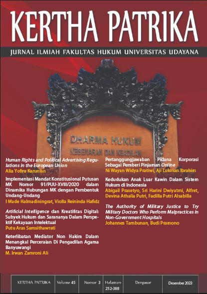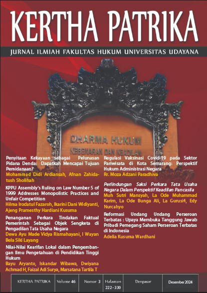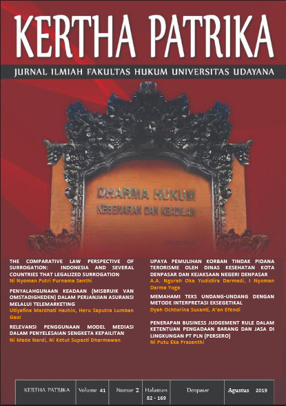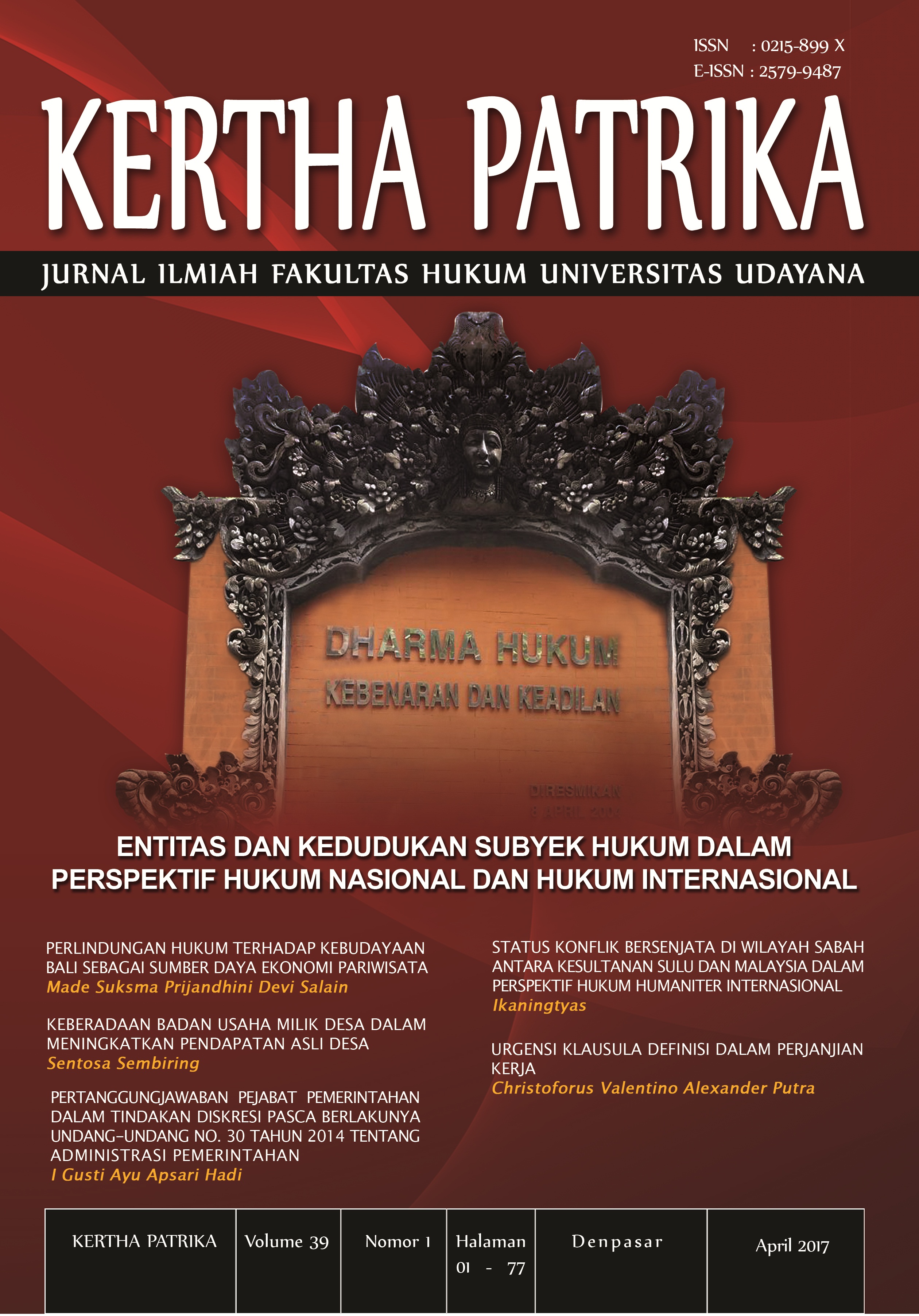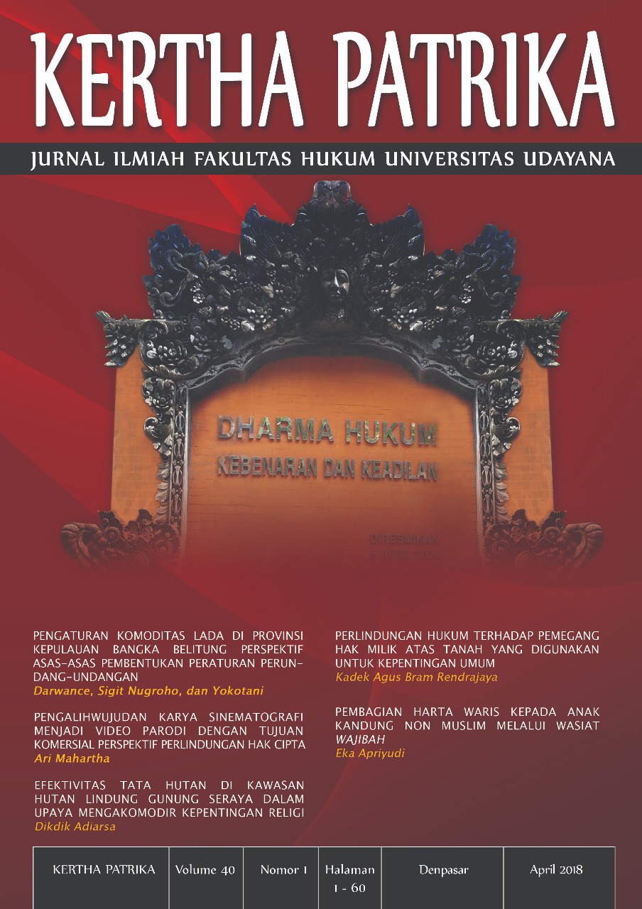 Jurnal Kertha Patrika (Kertha Patrika Journal) by Faculty of Law Udayana University is licensed under a Creative Commons Attribution-NonCommercial 4.0 International License.