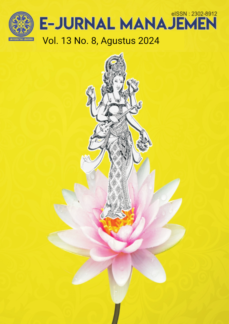 Vol 13 No 5 (2024)E-Jurnal Manajemen (e-ISSN 2302-8912) merupakan jurnal ilmiah elektronik yang diterbitkan secara daring dengan frekuensi bulanan. Jurnal ini bertujuan untuk meningkatkan kualitas keilmuan serta menjadi wadah bagi akademisi, mahasiswa, praktisi, dan pemerhati ilmu pengetahuan dalam bidang manajemen untuk berbagi dan menyebarluaskan hasil penelitian serta kajian ilmiah.