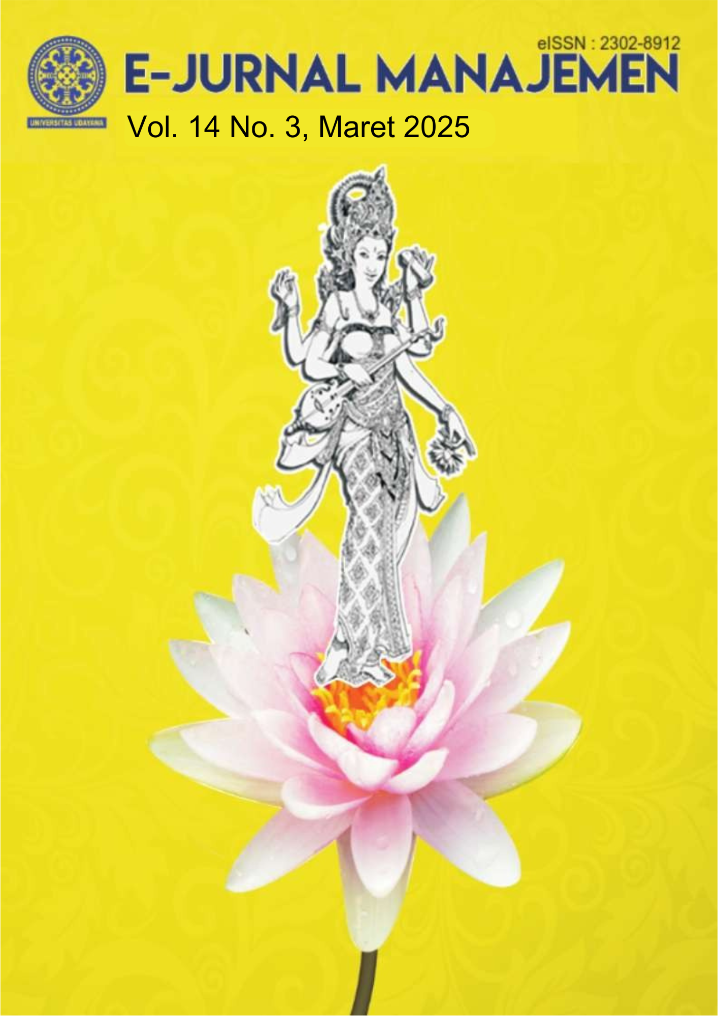 Vol 14 No 5 (2025)E-Jurnal Manajemen (e-ISSN 2302-8912) merupakan jurnal ilmiah elektronik yang diterbitkan secara daring dengan frekuensi bulanan. Jurnal ini bertujuan untuk meningkatkan kualitas keilmuan serta menjadi wadah bagi akademisi, mahasiswa, praktisi, dan pemerhati ilmu pengetahuan dalam bidang manajemen untuk berbagi dan menyebarluaskan hasil penelitian serta kajian ilmiah.