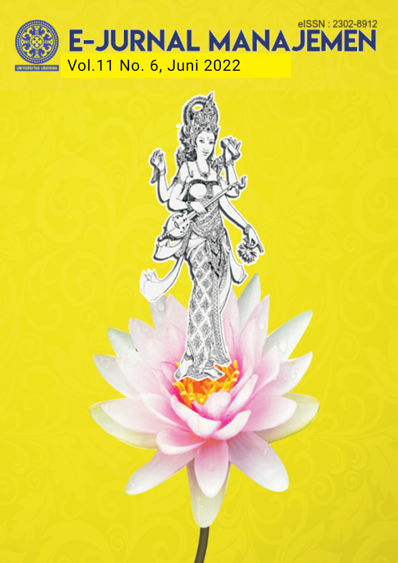 E-Jurnal Manajemen (e-ISSN 2302-8912) merupakan jurnal ilmiah elektronik yang diterbitkan secara daring dengan frekuensi bulanan. Jurnal ini bertujuan untuk meningkatkan kualitas keilmuan serta menjadi wadah bagi akademisi, mahasiswa, praktisi, dan pemerhati ilmu pengetahuan dalam bidang manajemen untuk berbagi dan menyebarluaskan hasil penelitian serta kajian ilmiah.