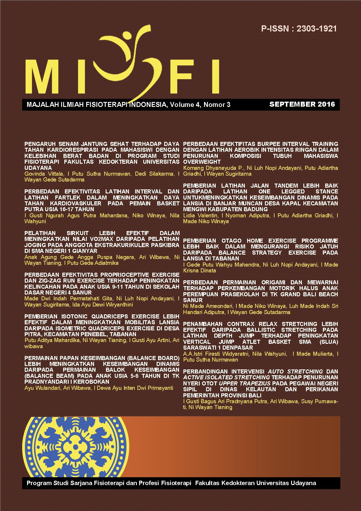 THE ADDITION OF CONTRAX RELAX STRETCHING IS MORE EFFECTIVE THAN BALLISTIC STRETCHING ON DEPTH JUMP EXERCISE IN INCREASING VERTICAL JUMP AMONG THE BASKETBALL ATLETHES SMA (SLUA) SARASWATI 1 DENPASAR