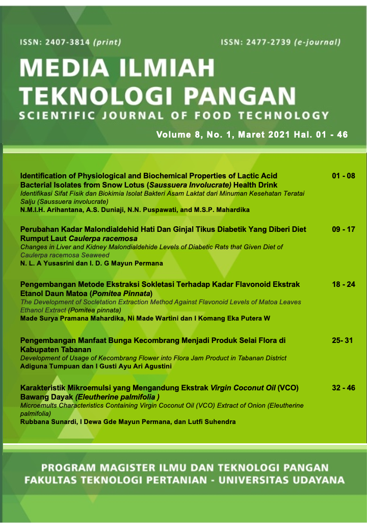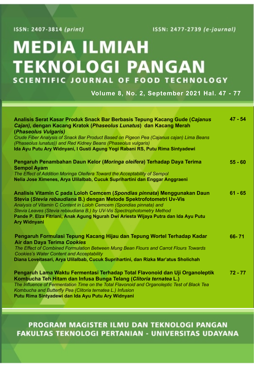 Media Ilmiah Teknologi Pangan (Scientific Journal of Food Technology)