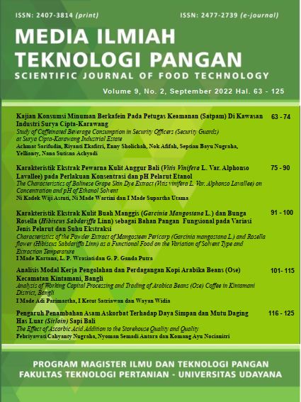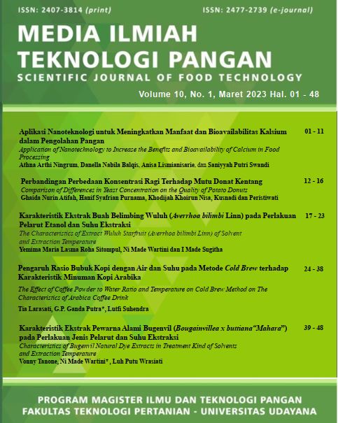 Media Ilmiah Teknologi Pangan, Volume 10, Nomor 01, Maret 2023.